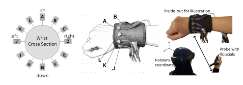 We investigate how vibrotactile wrist feedback can enhance spatial guidance for handheld tool movement in optical see-through augmented reality (AR). While AR overlays are widely used to support surgical tasks, visual occlusion, lighting conditions, and interface ambiguity can compromise precision and confidence. To address these challenges, we designed a multimodal system combining AR visuals with a custom wrist-worn haptic device delivering directional and state-based cues. This work was published in IEEE-TVCG and IEEE-VR 2026.